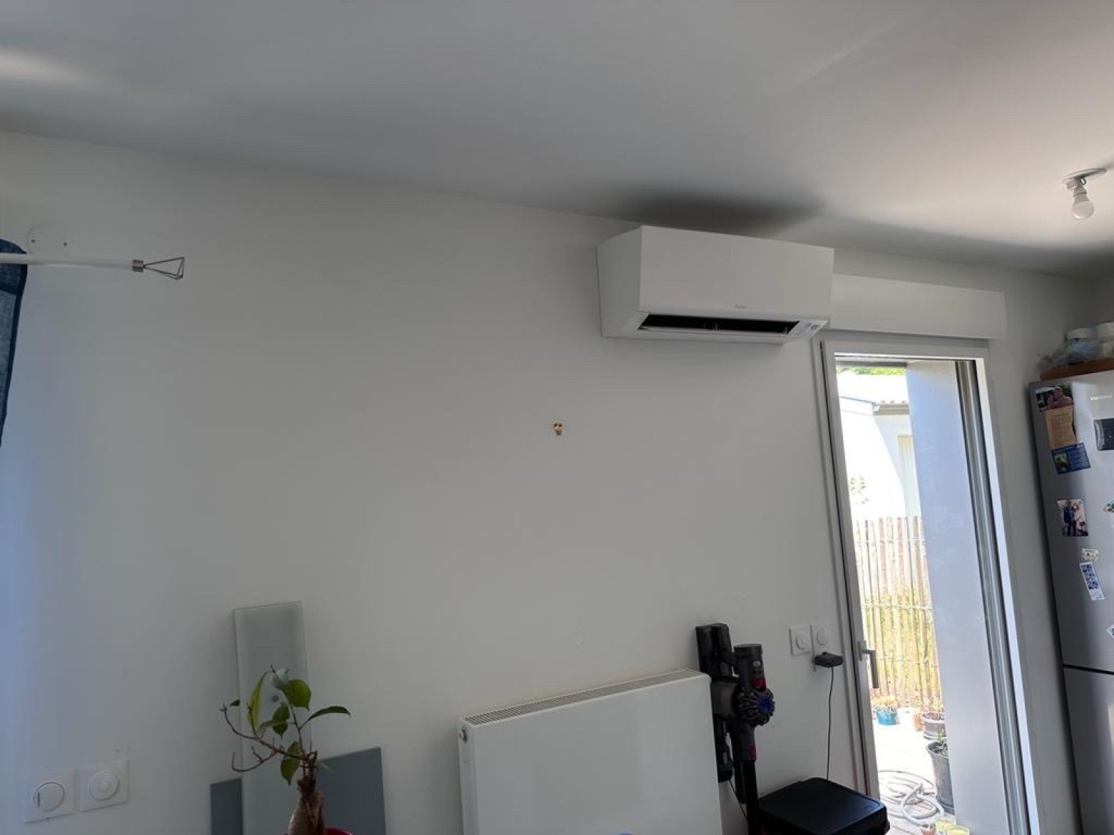 Nous avons fait l’installation d’un quad ri-splits dans une habitation récente sans dénigré la façade extérieure avec juste une goulotte vertical pour passer les liaisons frigo à Bruges en Gironde . Nous avons dû installer des pompes de relevages sur certains appareils car il n’y avait aucune solution pour faire des évacuations en gravitaire . Nous avons installer le groupe décaler de la maison pour ne pas gêner le client quand il est sur sa terrasse en passant les liaisons sous la terrasse dans une gaine de protection pour protéger l’isolant des liaisons frigorifiques .